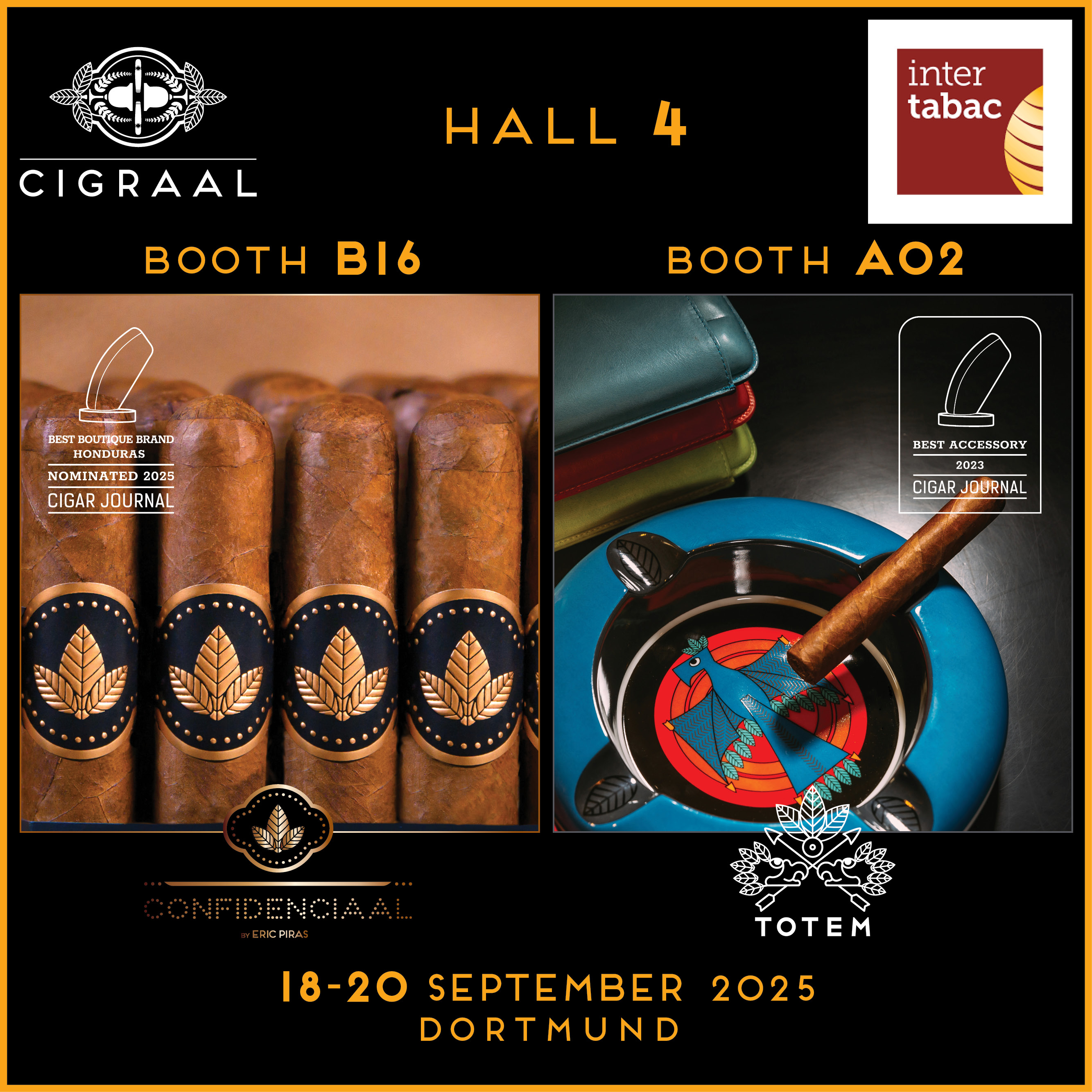 Cigraal esta contento de presentar CONFIDENCIAAL & TOTEM en Intertabac Dortmund tobacco show! Visítanos en Hall 4, Booth A12.